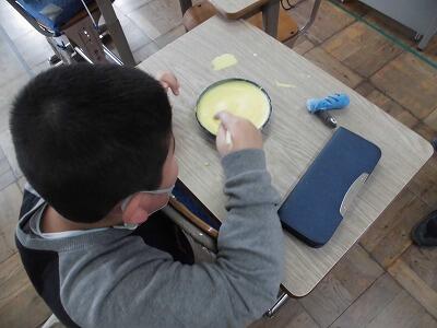 【さくら学級】今日も「バスボム」(発砲入浴剤)づくりに取り組みました。