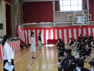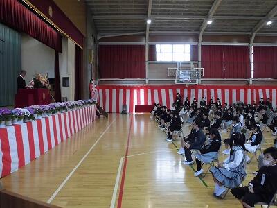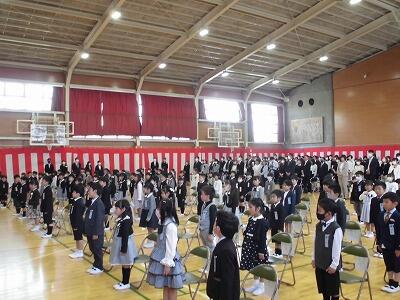 【5・6年生 卒業式予行】本番の卒業式に参加することができない5年生が予行に参加し、卒業生の退場を「威風