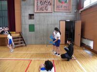 【体育朝会1・3・6年】今年度最後の体育朝会でした。長縄8の字1分間跳びを行いました。