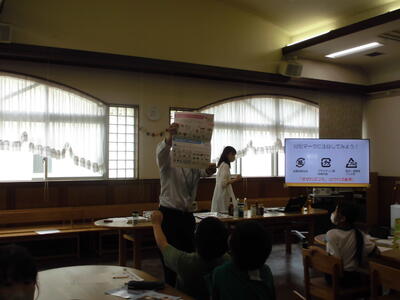 子供たちが、家庭ゴミの分別にチャレンジしていました。