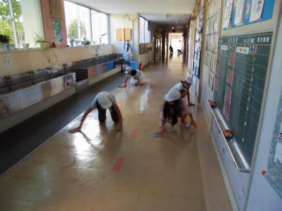6年生が職員室前の廊下を毎朝、掃除してくれています。ありがとう!