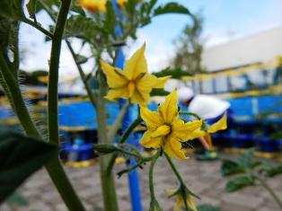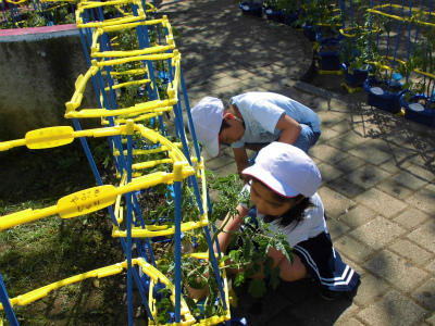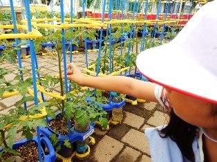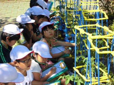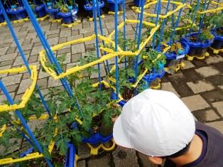 トマトの花が咲いて、水くれにも力が入る2年生です。