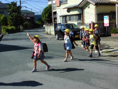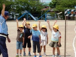 交通指導員さんにお出でいただき交通安全教室を行いました。