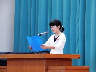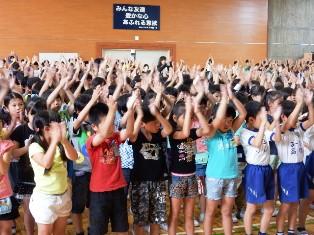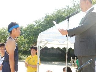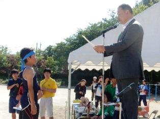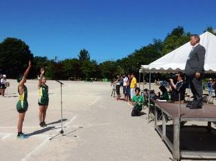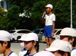 はじめに昨日の陸上競技大会の報告と代表児童が感謝の言葉を