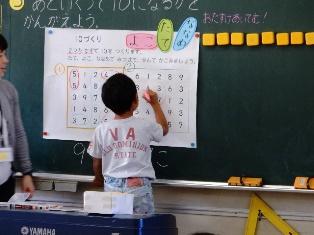 1年生は算数の授業で、いくつといくつの学習の様子です。