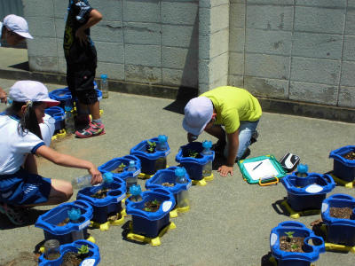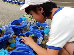 1年生は生活科の授業で、アサガオの観察をしています。