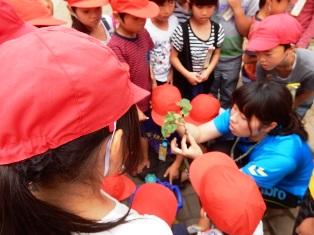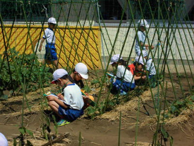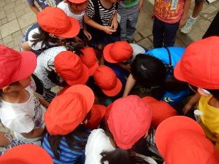 1年生が集まっているので中を覗いてみると・・・。育てている