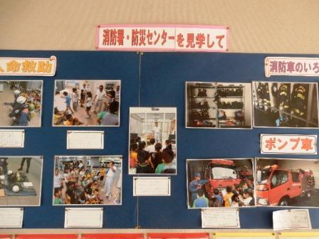 4年生の掲示板には、先日訪問した春日部消防署の掲示物が掲示されていました。