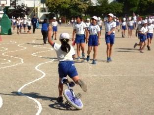 今日は、3年生が交通安全教室で自転車の乗り方を教えていただきます。
