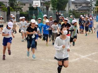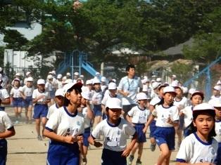 全校朝会もありますが、今日も朝マラソンに取り組む子どもたちです。