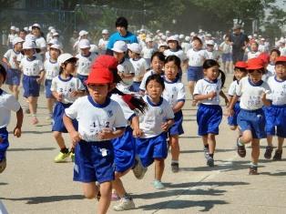 子どもたちが大勢走り出す前にひたすら走る子どもたちがいます。