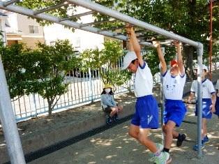 3年生は体育の授業で、鉄棒の授業です。