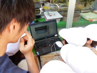 先生と一緒に見ているのはパソコンの画面です。見ているのは、