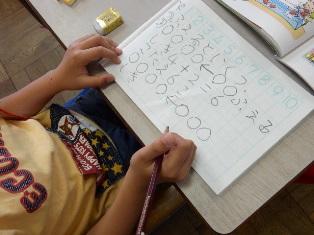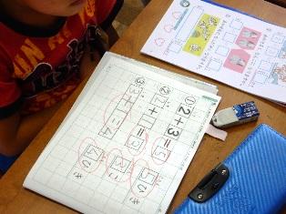 1年生は算数の授業で、たし算の学習をしています。ノートを