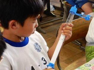 4年生は理科の授業で、水と空気のことを調べます。手に
