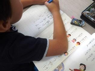 ノートに書いています。算数同様にノートを使い始めました。