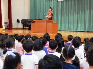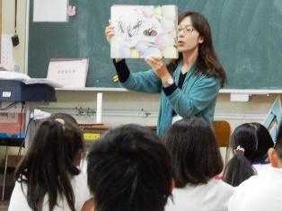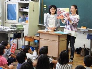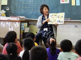 今日は、春日部おはなしの会の皆さんが、1年生と2年生の