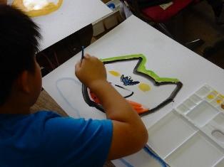 5年生は図工の授業で、「未来の春日部」をテーマに描いています。