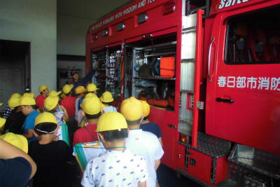 春日部消防署本署へ見学に出かけました。心配されたお天気も味方してくれたようでした。