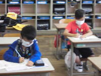 国語や算数の学習では、様々な感染対策の工夫をしながら学習を進めています。社会や理科、図工等の学習では、タブレットを活用した調べ学習を行っています。リコーダーの学習では一人ずつ演奏するようにしています。子どもたちは落ち着いて、とても意欲的に学習に取り組んでいます。