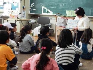 今日は、1年生と2年生で保護者の皆様による読み聞かせを