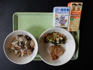 給食 交流給食 投稿日時 : 2015/09/14 豊春小 カテゴリ: ひじきごはん、塩麹ぶた肉、れんこんの炒め物、牛乳です。交流給食の学級は、牛乳の代わりにみかんジュースになります。今日の6年1組と3年1組の交流給食の様子です。6年生が盛りつけや配膳を行ってくれました。ごちそうさまは、6年生と3年生の代表児童があいさつしました。楽しく和やかな交流給食の時間になりました。