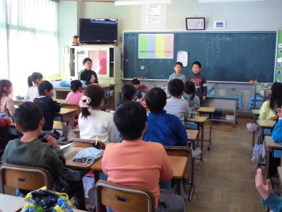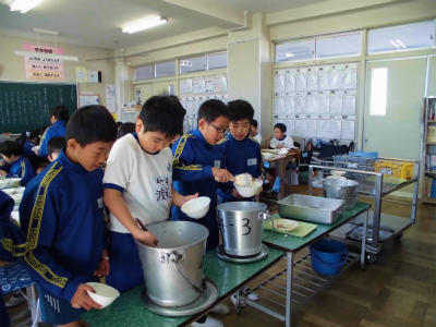 放送委員会の子どもたちは、校内放送を流しながら給食をいただきます。