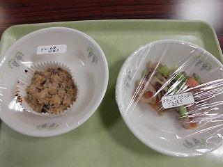 除去は、卵抜きのぎせい豆腐、ごま抜きのレンコンのきんぴら