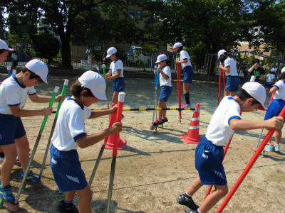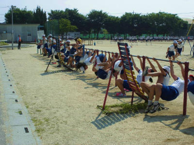 さわやかタイムで元気 投稿日時 : 2017/06/23 豊春小 カテゴリ: 準備運動を丁寧に行ってから、それぞれの学年の運動に入ります。体を反らせてくぐります。柔軟性を高めます。竹馬でバランスをとっています。体幹を鍛えます。鉄棒で逆さ感覚を鍛えます。砂場で大きくジャンプ!段ボールを飛び越します。走力と跳躍力を高めます。