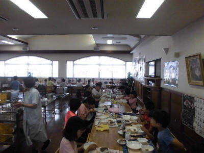 7月生まれの異学年で集まり、一緒にランチルームで楽しく給食をたべます。