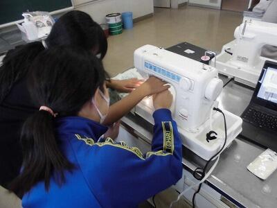 【5年生 家庭科】練習布で試し縫いをしました。