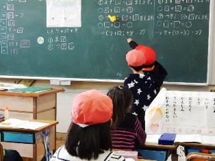 授業の様子 投稿日時 : 2015/11/19 豊春小 カテゴリ: 3年生は書き初めの練習です。毛筆は、3年生から学習します。筆に含ませる量や筆の持ち方などを丁寧に教えています。5年生は外国語活動の授業です。グループに分かれて、ゲームをしていました。2年生は算数の授業で、3つの数のたし算を( )を使って計算します。7+12+8を(7+12)+8と計算するか、7+(12+8)と計算するか。その説明をしています。