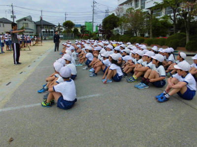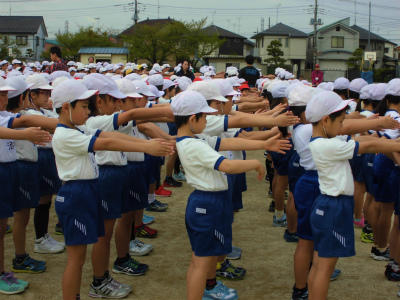 さわやかタイム 投稿日時 : 2017/04/24 豊春小 カテゴリ: 全校統一の「気をつけ、休め、前にならえ」などの約束事を確認しました。前にならえでは、肩の位置まで腕をまっすぐに上げます。6年生、行進の様子です。軸がぶれていません。格好いいです。3年生、腕を大きく振っていますね。後ろにも大きく振ることができています。さわやかタイム終了後、4年生は担任の先生の指示を受けています。顔を上げて、しっかりと聞いていますね。