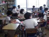 朝の会では「大空賛歌」の歌や詩の音読。授業中は1時間、1時間のめあてに向かって集中して学習に取り組んでいました。対話的な学習も必要に応じて行っています。