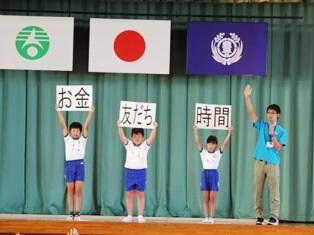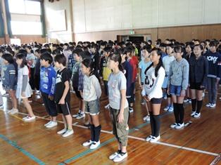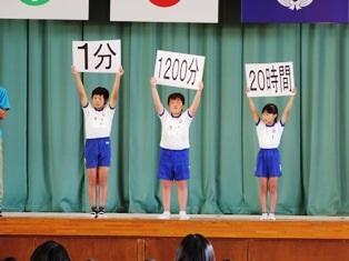 全校朝会 投稿日時 : 2015/10/07 豊春小 カテゴリ: 校長からは、◯◯の秋として、スポーツの秋、読書の秋、勉学の秋について、また、今月は現学年の後半のスタートになることなどの話がありました。続いて、今月の生活目標 「時間を守り てきぱきと行動します」について、もし、1時間の授業で1分スタートが遅れたら、1年間で1200分=20時間が無駄になることを例に、時間の大切さについて話がありました。