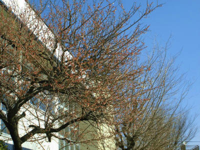 体育館近くの桜の蕾も、膨らみ始めました。開花が待たれます。