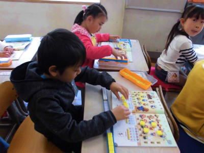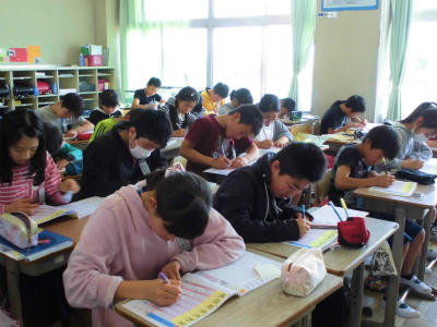 6年:国語、画数を確認しながら漢字練習をしていました。