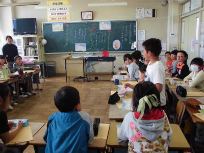 4年:道徳、自分の考えをみんなに発表しています。よく聞いていますね。