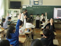 外国語活動「What's this?」、算数「おおきいかず」、図工「あそぼうよ!パクパクさん」「色を重ねて広がる形」「木と金属でチャレンジ」、体育「なわとび」「ソフトバレーボール」の学習に意欲的に取り組む子どもたちの様子です。