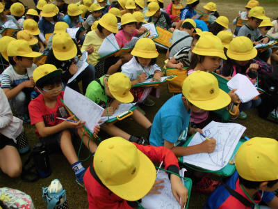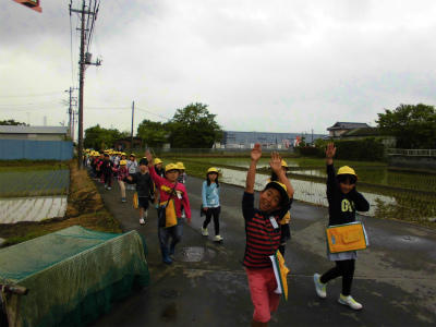 3年校外学習(増戸方面) 投稿日時 : 2017/05/10 豊春小 カテゴリ: 安全に気をつけて歩いています。田畑の中を気持ちよく歩いています。休憩しているときに、ちょうど「しんちゃんバス」が通りました。見学したことを思い出しながら、学習シートにまとめています。