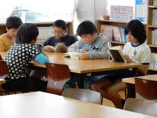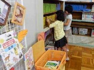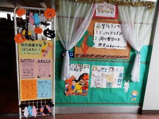 学校図書館支援員の方が10月にふさわしい飾り付けや図書室内の
