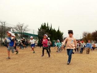 雨も止んでいたので、今日も朝マラソンに取り組む子どもたちです。