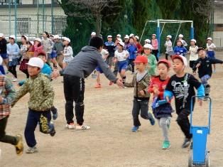 寒さに負けず、今日も朝マラソンに取り組む子どもたちです。