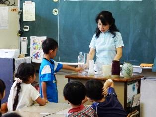 他の容器に移すと比較ができます。と答え、ある子は、教室の後ろにある