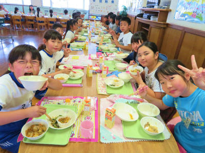 交流給食 投稿日時 : 2017/05/19 豊春小 カテゴリ: ごはん 牛乳 和風卵焼き 小松菜のごま和え 肉じゃが みかんジュース(交流)本日は、6年生と3年生の交流給食でした。みんな楽しくおいしい給食をいただきました。