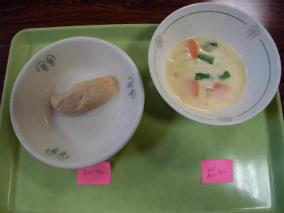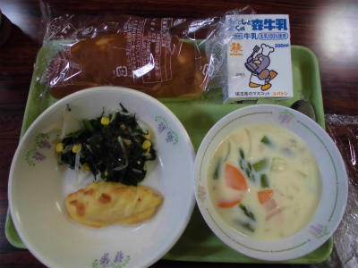本日の給食 投稿日時 : 2017/06/27 豊春小 カテゴリ: パインパン、牛乳、ささみのピカタ、ポパイサラダ、アスパラとえびのクリーム煮アレルギー対応は、卵なしのささみ、えび・あさり抜きのクリーム煮です。きょうも美味しくいただきました。一品で食べても美味しいのですが、組み合わせもいつも絶妙な給食です。
