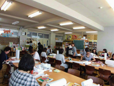 図書ボランティアの皆様が、本の修繕をしてくださいます。朝の時間は、1年生の教室で読み聞かせも行ってくださいました。
