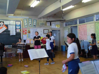バトンクラブと金管バンドクラブの子どもたちは、休み時間にも熱心に練習します。日々の積み重ねが重要です。