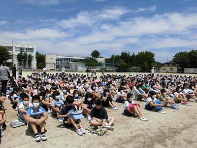 本日の3校時に避難訓練を行いました。今年度初めての避難訓練です。避難の放送が入ってはじめて校庭に出てきた時間が1分20秒。全校児童が集まった時間が5分20秒でした。誰一人話をすることなく、先生方の指示をしっかりと聞いてすばやく避難することができました。校長先生からは、、九年前に起こった東日本大震災のお話と避難の基本である「おかしもち」のお話を聞きました。本当に大きな地震が起きたときのために真剣に訓練に取り組まなくてはいけません。子ども達は一人もしゃべることなく真剣にがんばっていました。