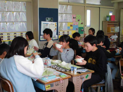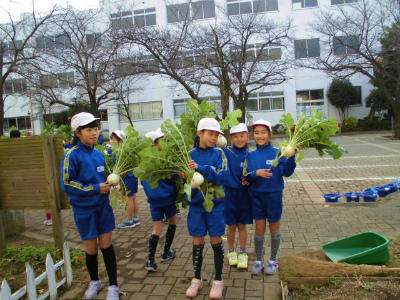 本日の給食 大根は? 投稿日時 : 2018/12/10 豊春小 カテゴリ: 献立は 中華麺、ピリ辛みそスープ 牛乳 ポテトのチーズ焼き、小松菜とメンマのソテー除去食は チーズ抜きポテト、ごま抜きのみそスープもぐもぐタイム…給食の時間の後半は黙って食べる時間があります。担任が読み聞かせをしています。6年生の教室からの給食風景です。2年生が学校ファームの大根を抜きました。給食の食材になるでしょうか…?楽しみです。